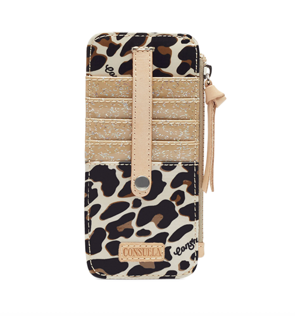 Keep your essentials stylishly organized with the Mona Card Organizer. Featuring five card slots, an ID pocket, and a secure snap flap, it’s perfect for keeping your cards in check. A cozy cash zipper compartment adds extra convenience, all wrapped in soft natural leather trim and our signature Mona ConsuelaCloth™ exterior. Compact yet roomy at 3 ½” x 7 ½” x ¾”, this little beauty is proudly made in Mexico to keep your day smooth and your style on point.